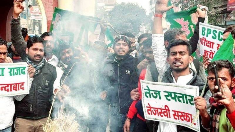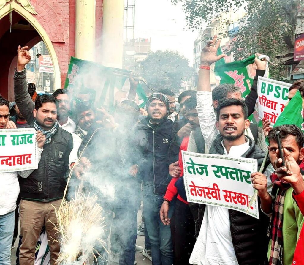 Gaya :-बीपीएससी परीक्षा रद्द कराने की मांग राजद शीर्ष नेतृत्व के निर्देशानुसार आज दिनांक 6 जनवरी 2025 दिन सोमवार 3 बजे को गया युवा राजद के बैनर तले युवा राजद गया के बैनर तले छात्र राजद एवं महागठबंधन युवा इकाई के द्वारा गया के गांधी मैदान 5 नम्बर गेट से आक्रोश मार्च करते टावर चौक तक निकाला गया एवं मुख्यमंत्री का पुतला दहन टावर चौक पर किया गया!